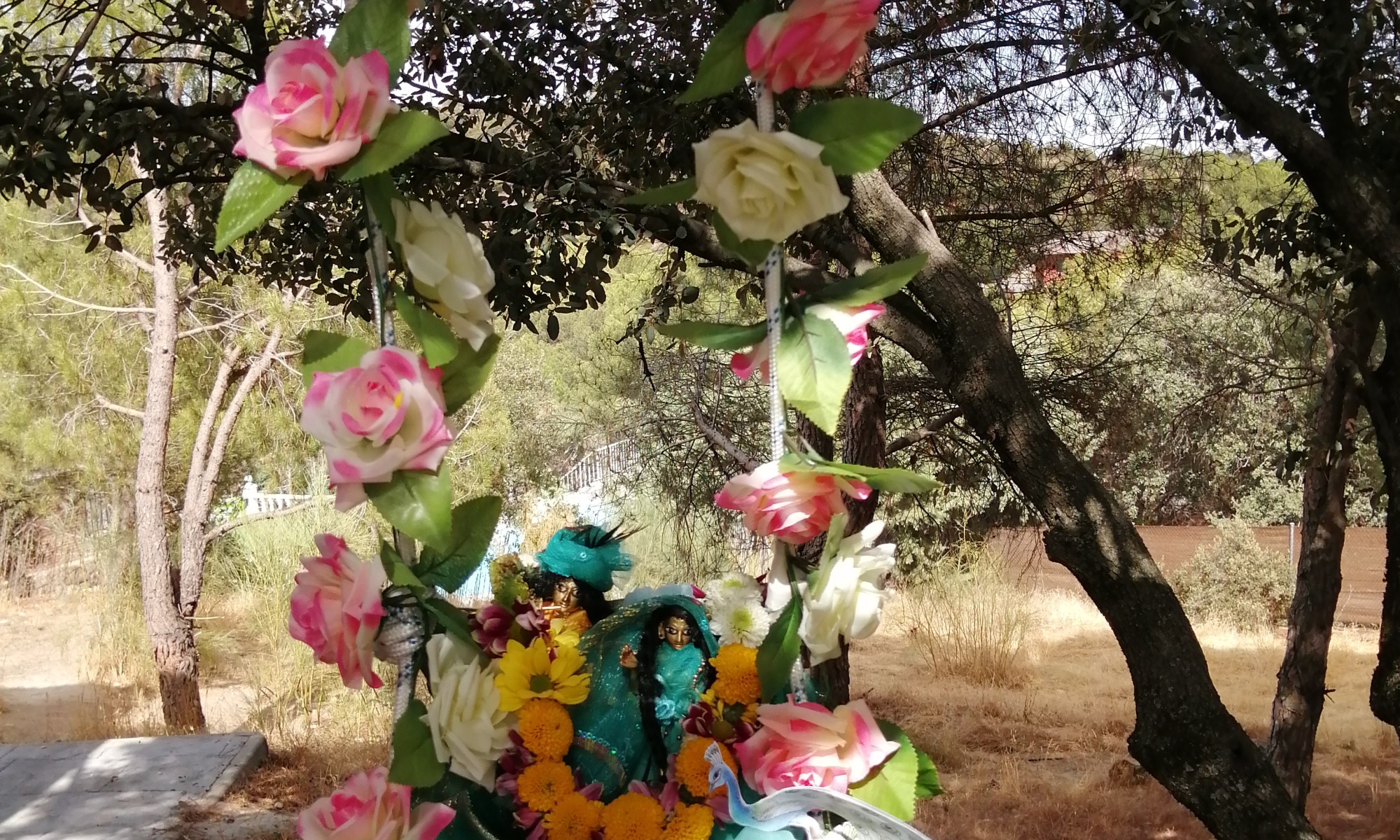 Srila Sanatan Goswami Pada explica: “¿Cuál es el svarupa del prema?” Atyanta prakara mamata yukta loke sad bhandubad sambhanda … significa tener una relación natural hacia Radha y Krishna como un miembro más de la familia, saturada con sentimientos intensos de posesividad : “Oh mi Radhika” – Ahora ella está en Varsana y no tiene ojos sospechosos sobre ella, que le sigan y se pregunten qué hace o a donde va. Ella es libre y puede ir de aquí a allá y encontrarse con sus amigas- sakhis-. En este tiempo sus sakhis han hecho un hermoso columpio – jhulan- y ella puede ir a sentarse con Sri krishna sin ningún problema de ser vista.