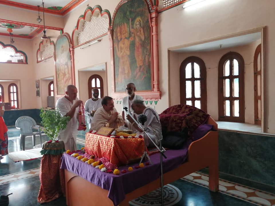 Este año tuvimos la maravillosa experiencia de sentarnos a escuchar la escritura ancestral Srimad Bhagavatam por uno de los pandits, escolares prominentes de Vrindavan Sri Acyuta Lal Bhatta MAharaja