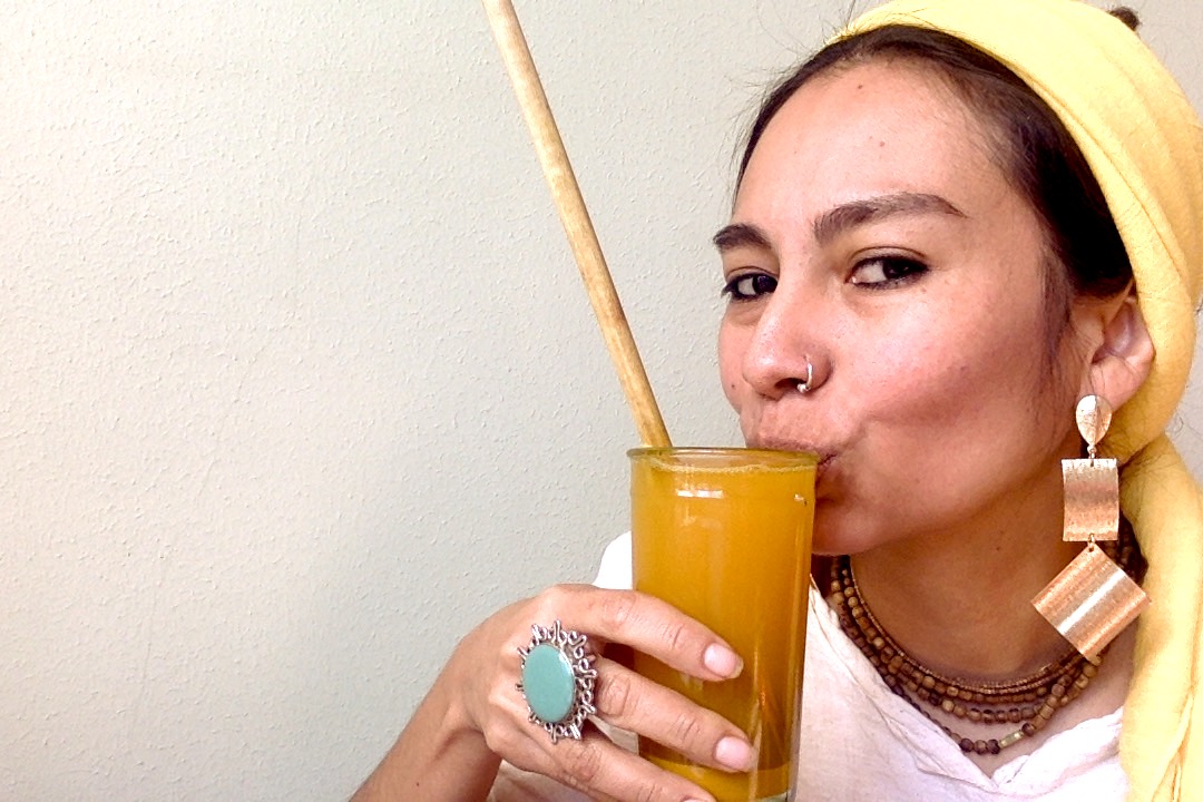 Colocar en la zumidora el jengibre y la cúrcuma fresca. Zumir. Luego mezclar con los demás ingredientes y wuala!!!