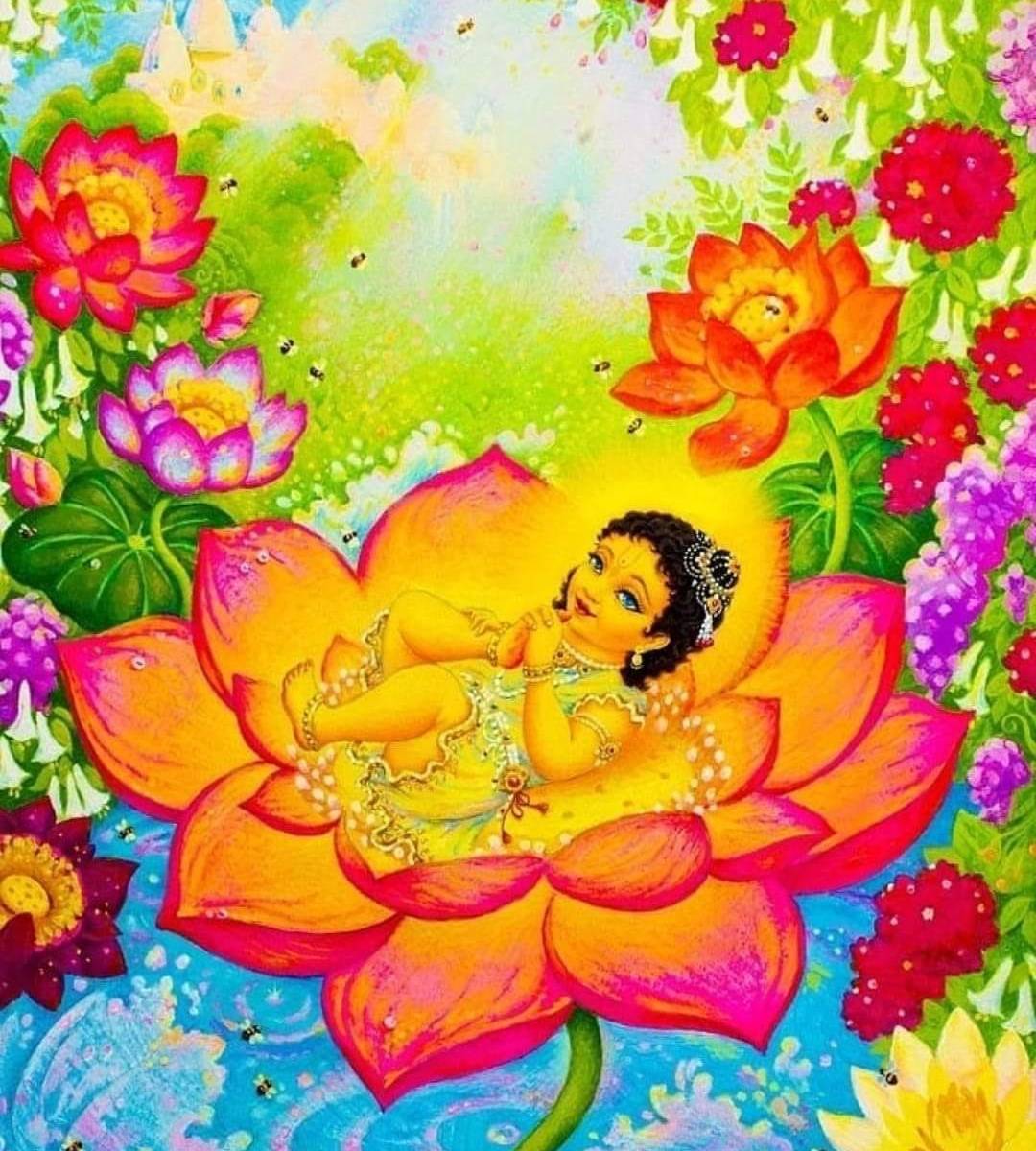 El Brahma-vaivarta Purana describe que cierta vez en la morada transcendental de Vrindavan, Krishnachandra estaba sentado en un trono dorado, ubicado debajo de una enredadera madhavi.Él estaba pensando en cómo disfrutar aún más de las melosidades nectáreas de sus pasatiempos. Debido a este pensamiento, y únicamente por Su propia y única voluntad, Srimati Radharani se …
