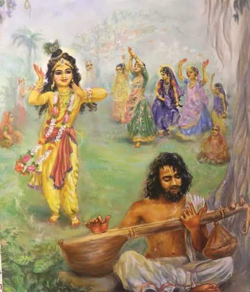 “En este mes, las mañjarīs ayudaron a Keśava a servir a Srimati Rādhārānī , a practicar todos los días y le enseñaron muchas cosas. Aprendió el arte de la decoración, el arreglo y el uso adecuado del sándalo, kuṁkum, kasturi (almizcle), goracana (pigmento amarillo brillante), así como diversas habilidades musicales, canto, baile, actuación y otras …