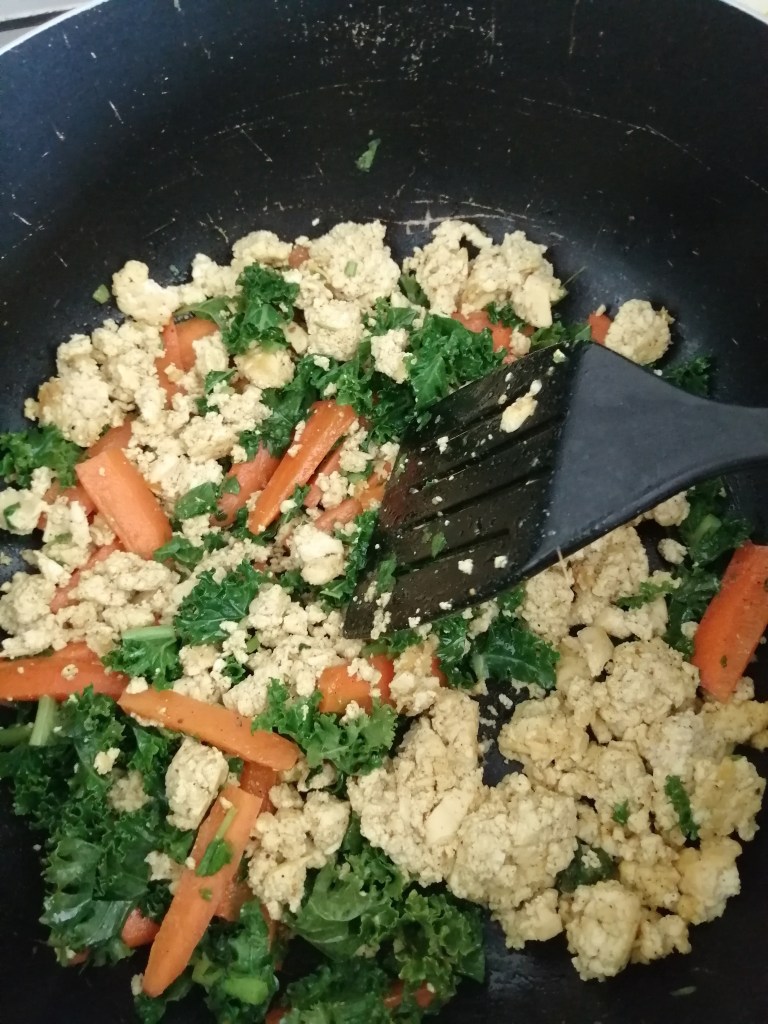 4. Luego agrega el revuelto de tofu y mezcla bien